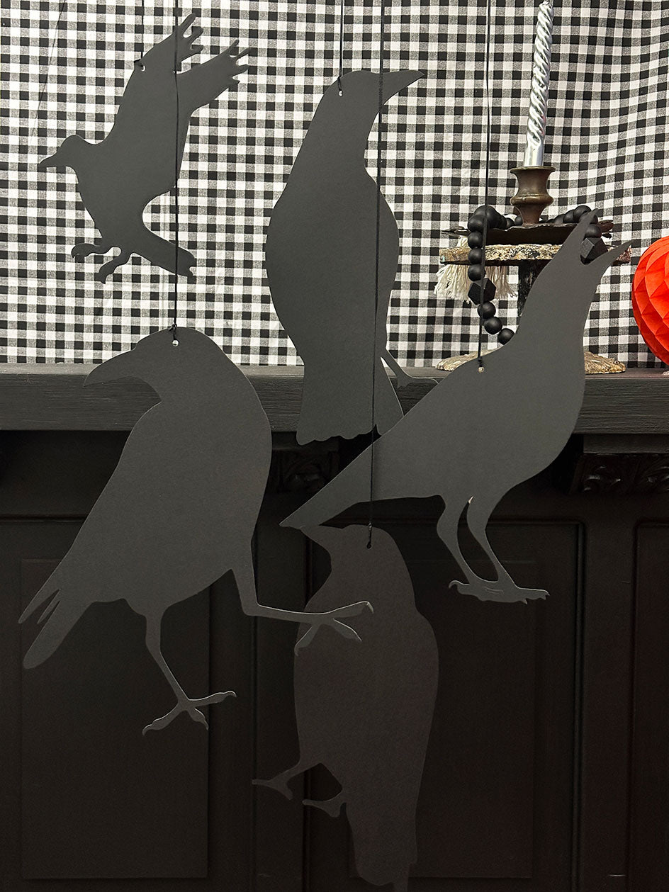 Estos cuervos de papel negro, recortados en un grueso y resistente papel negro, están hechos para darle un aire misterioso y teatral a tu decoración. Suspendidos en el aire parecen cobrar vida, como si vigilaran en silencio tu celebración.