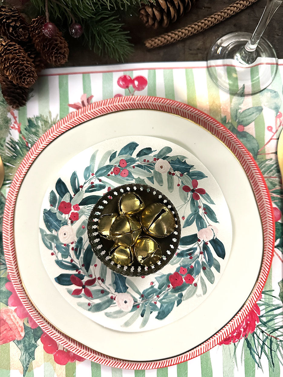 Decoración de papel para el plato. Sobre el puedes montar la copa con el postre o una entrada.